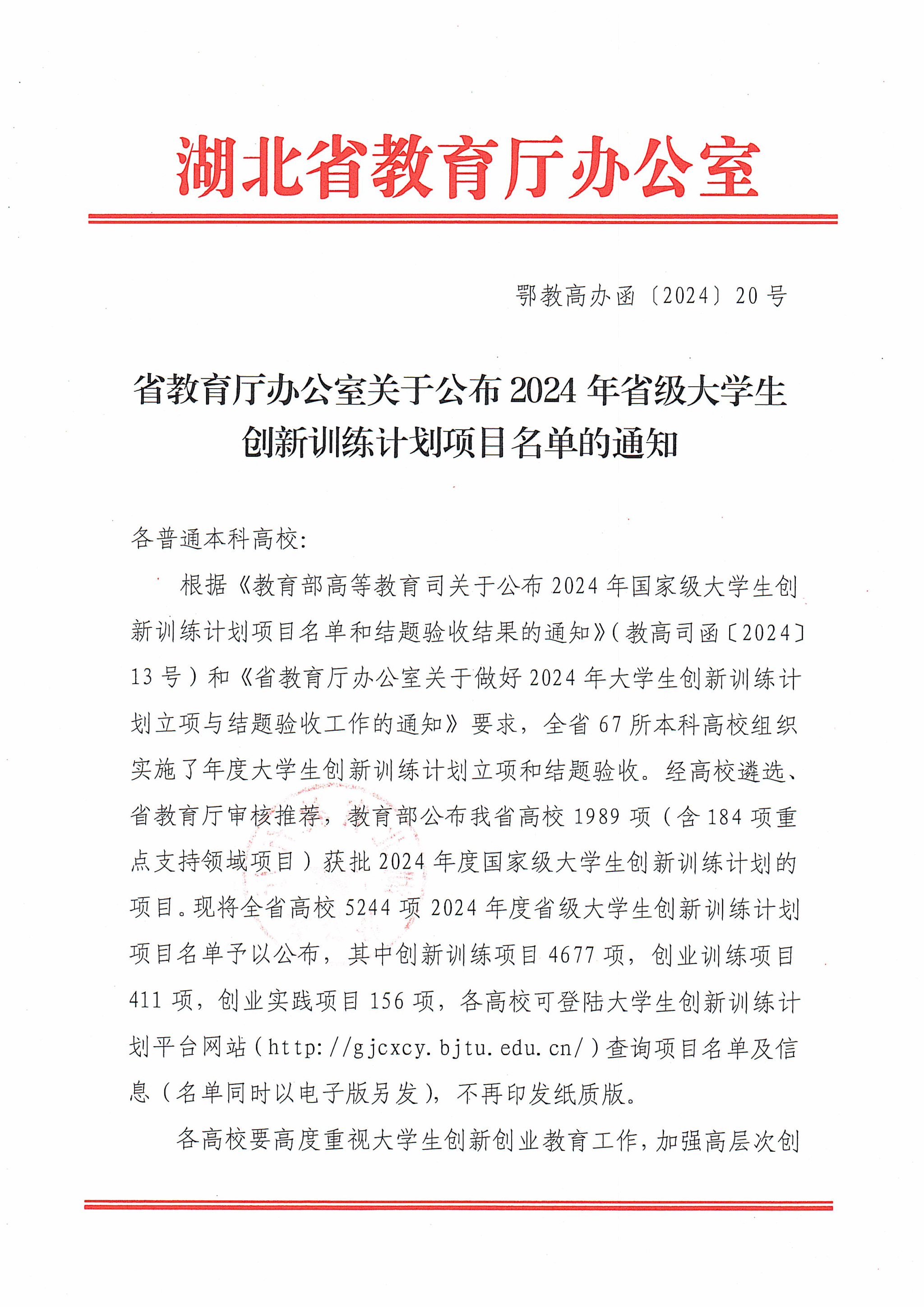 省教育厅办公室关于公布2024年省级老员工创新训练计划项目名单的通知